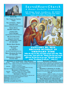 Parish Bulletin for January 20, 2019 by Charlie Sofio | Jan 22, 2019 | Bulletin | 0 comments Submit a Comment Cancel replyYour email address will not be published. Required fields are marked *Comment * Name * Email * Website Save my name, email, and website in this browser for the next time I comment.
