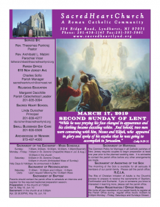 Parish Bulletin for March 17, 2019 by Charlie Sofio | Mar 14, 2019 | Bulletin | 0 comments Submit a Comment Cancel replyYour email address will not be published. Required fields are marked *Comment * Name * Email * Website Save my name, email, and website in this browser for the next time I comment.
