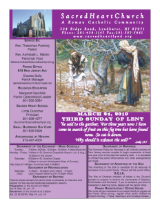 Parish Bulletin for March 24, 2019 by Charlie Sofio | Mar 21, 2019 | Bulletin | 0 comments Submit a Comment Cancel replyYour email address will not be published. Required fields are marked *Comment * Name * Email * Website Save my name, email, and website in this browser for the next time I comment.