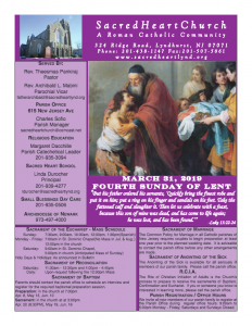 Parish Bulletin for March 31, 2019 by Charlie Sofio | Mar 26, 2019 | Bulletin | 0 comments Submit a Comment Cancel replyYour email address will not be published. Required fields are marked *Comment * Name * Email * Website Save my name, email, and website in this browser for the next time I comment.