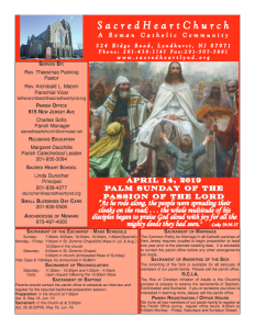 Parish Bulletin for April 14, 2019 by Charlie Sofio | Apr 8, 2019 | Bulletin | 0 comments Submit a Comment Cancel replyYour email address will not be published. Required fields are marked *Comment * Name * Email * Website Save my name, email, and website in this browser for the next time I comment.