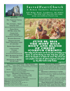 Parish Bulletin for June 23, 2019 by Charlie Sofio | Jun 18, 2019 | Bulletin | 0 comments Submit a Comment Cancel replyYour email address will not be published. Required fields are marked *Comment * Name * Email * Website Save my name, email, and website in this browser for the next time I comment.