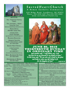Parish Bulletin for June 30, 2019 by Charlie Sofio | Jun 24, 2019 | Bulletin | 0 comments Submit a Comment Cancel replyYour email address will not be published. Required fields are marked *Comment * Name * Email * Website Save my name, email, and website in this browser for the next time I comment.