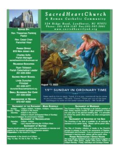 Parish Bulletin for August 13, 2023 by Charlie Sofio | Aug 7, 2023 | Bulletin | 0 comments Submit a Comment Cancel replyYour email address will not be published. Required fields are marked *Comment * Name * Email * Website Save my name, email, and website in this browser for the next time I comment.