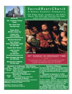 Parish Bulletin For August 20, 2023 by Charlie Sofio | Aug 19, 2023 | Bulletin | 0 comments Submit a Comment Cancel replyYour email address will not be published. Required fields are marked *Comment * Name * Email * Website Save my name, email, and website in this browser for the next time I comment.